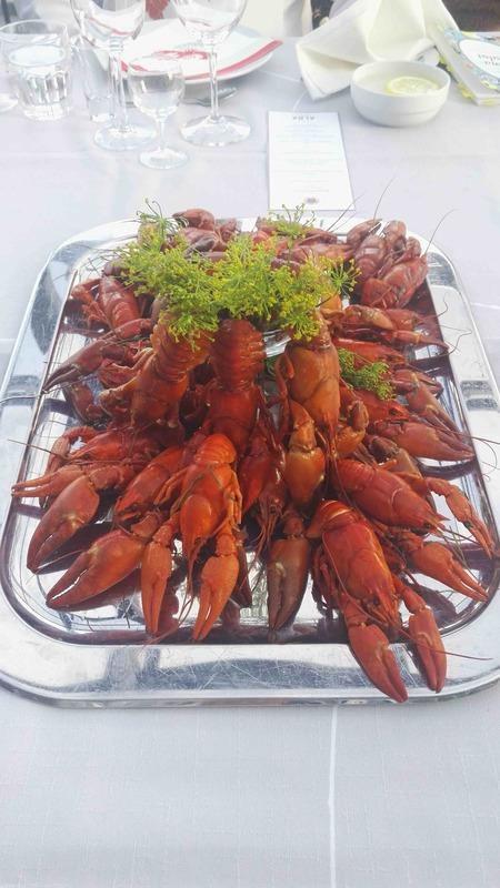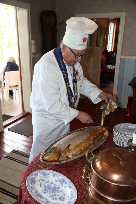 Herkuttelun kohteena oli tänävuonna kokonaisena paikalla savustettu iso merilohi, ynnä tarpeelliset hörtimet, soosit, ja verekset potaatit sekä sitten lopuksi jäätelöherkut ja vielä viinit ja lipparit.