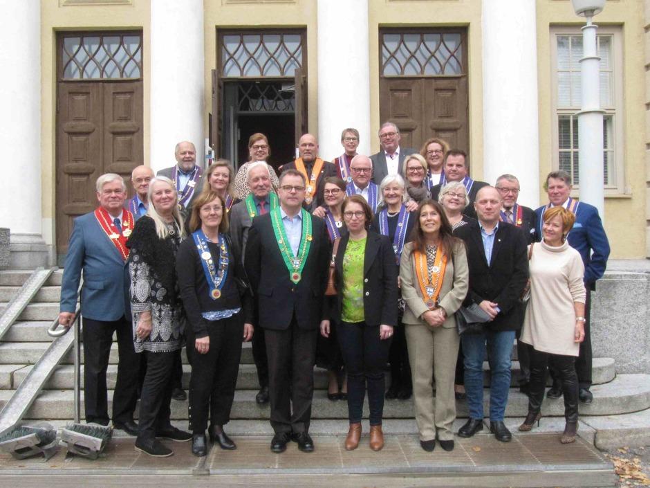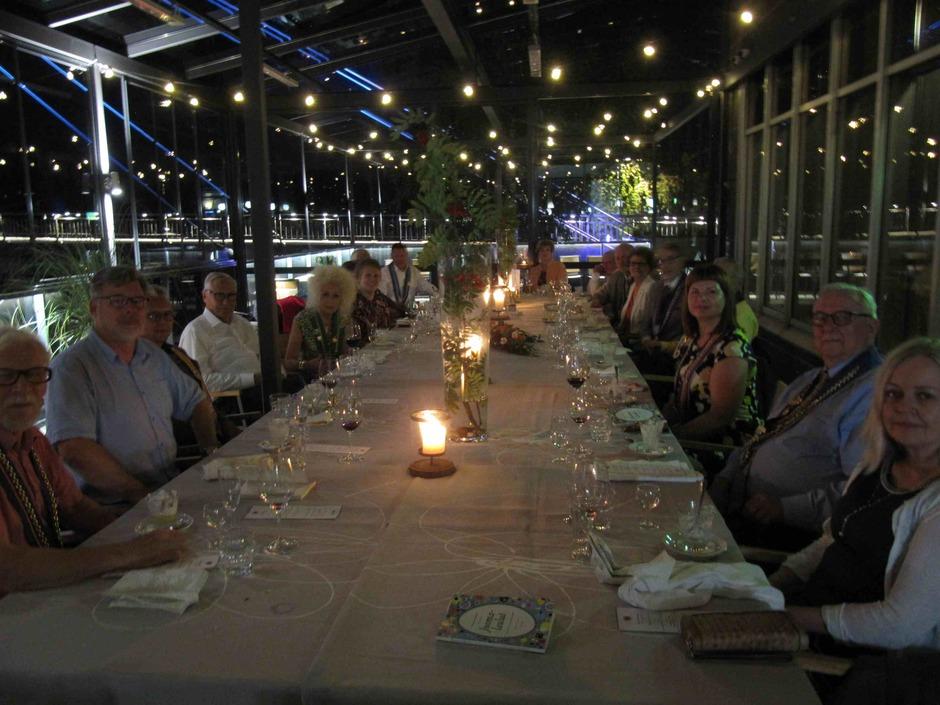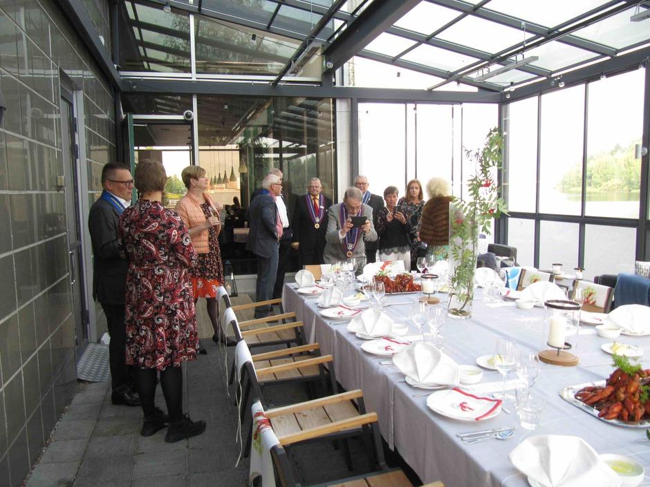 Kaksikymmentä rotissööriä ja seuralaista kokoontui viettämään Jyväskylän voutikunnan perinteistä rapujuhlaa. Tilaisuus pidettiin ravintola Alban uudistetulla katetulla terassilla, josta oli loistava näköala Jyväsjärvelle. Keittiömestari Mari Moilasen illan menun aloitti myskikurpitsakeitto ja kun makusilmut oli herätetty, päästiin pääasiaan eli rapuihin. Tarjolla oli sekä joki- että täplärapuja, ja niitä oli riittävästi. Sopivasti nautitun viinin ja snapsien virittämänä rapujuhlaperinteeseen kuuluvat juomalaulutkin raikuivat.