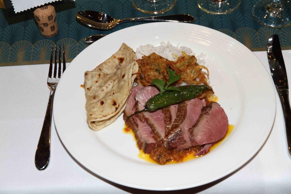 Pääruoka oli valmistettu Priimuksen keittiössä Helmut Rauniahon johdolla. Intialaisen menun toteutuksessa oli osallisena intialaisen opiskelijan lisäksi muitakin eri kansallisuuden oppilaita. Pääruoka oli lautastarjoiluna ja annoksessa oli: