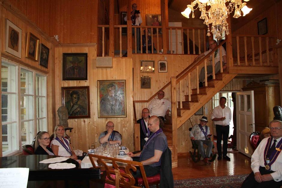 Astelimme suoraan yläkerran saliin, jossa meillä oli ilo vastaanottaa pieni klassinen musiikkihetki kuohuvan kera ja tuon jälkeen Iiris kuljetti meidät tarinallaan vanhan teollisuuspaikkakunnan ja talon historiaan. Saimme kuulla, kuinka kansainväliset ja kotimaiset merkkihenkilöt, tunnetut taiteilijat ja näyttelijät ovat vierailleet noiden jylhien seinien sisällä. Klubilla on koettu kulttuuria, valmistauduttu jahtipäiviin, juhlittu merkkipäiviä ja nautittu aina hyvästä ruoasta. Näin tälläkin kertaa. Riistaillallinen oli kerrassaan onnistunut. Tarjoilut olivat maukkaan maistuvat ja henkilökunta hyvin huomaavaista. Ilta Tampereen Paistinkääntäjien seurassa oli voimaannuttava. Pöydissä keskusteltiin iloisen jopa kovaäänisesti ja naurua oli ilmassa paljon. Tällaiset yhteiset illat antavat paljon. Olipa mukava lauantai!
