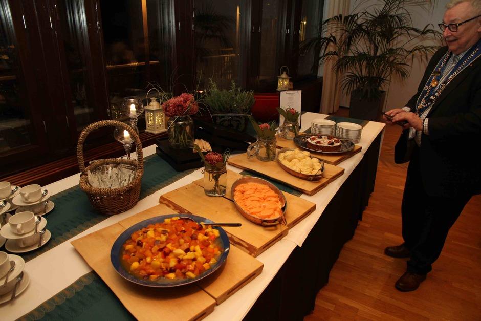 Chef rôtisseur Pasi Kovanen oli loihtinut viski-teemaisen menun, jonka alkuruoaksi saimme Laphroig-suolattua lohta yrttiperunan kera. Juomana oli Prümin omaa tuotantoa oleva kuiva Riesling. Pääruokana oli hunajalla ja Balvenie-viskillä glaseerattua ankanrintaa sekä palsternakkapyreetä. Sitä täydensi hienosti Cascina delle Rosen punaviini nebbiolo-rypäleestä. Menun jälkiruokana oli omenapiirasta, bourbonvaniljamoussea ja karamellisoitua appelsiini- ja Glenlivet-kastiketta sekä palanpainikkeena Irish Coffee.
