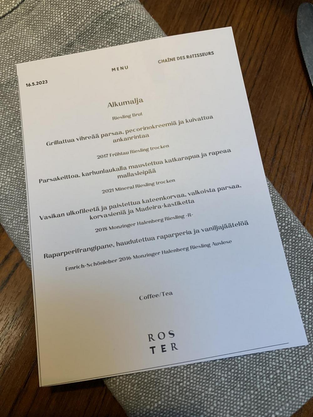 Tiistai 16.05. Parsaa, Ravintola Roster